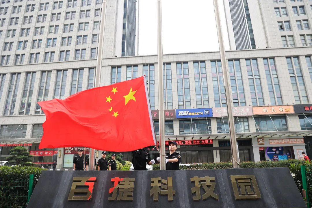 清晨八时,百捷科技园举行了,简单但庄重的升旗仪式,伴随着庄严的国歌,鲜艳的五星红旗在人们的注目礼中升向顶端,随风飘扬在江夏的天空中,在中华人民共和国成立74周年之际,百捷用自己的方式祝愿祖国繁荣昌盛、国泰民安